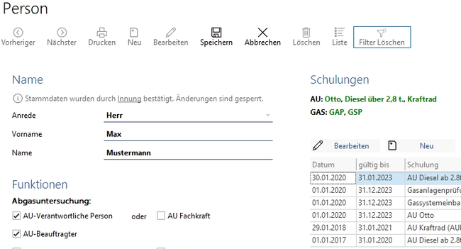 Wenn die zuständige Kfz-Innung Änderungen am Personal vornimmt, werden diese Änderungen dann wiederum bei der nächsten Synchronisierung ins Programm übernommen.